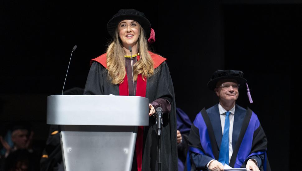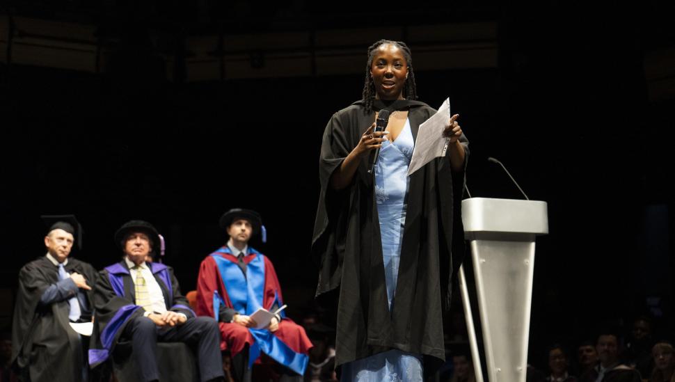 This year’s ceremony also saw Honorary Degrees conferred on two outstanding figures. Natasha Chivers, an award-winning lighting designer and LAMDA alumna whose work has illuminated stages across the UK, was recognised for her artistry and contribution to the industry.